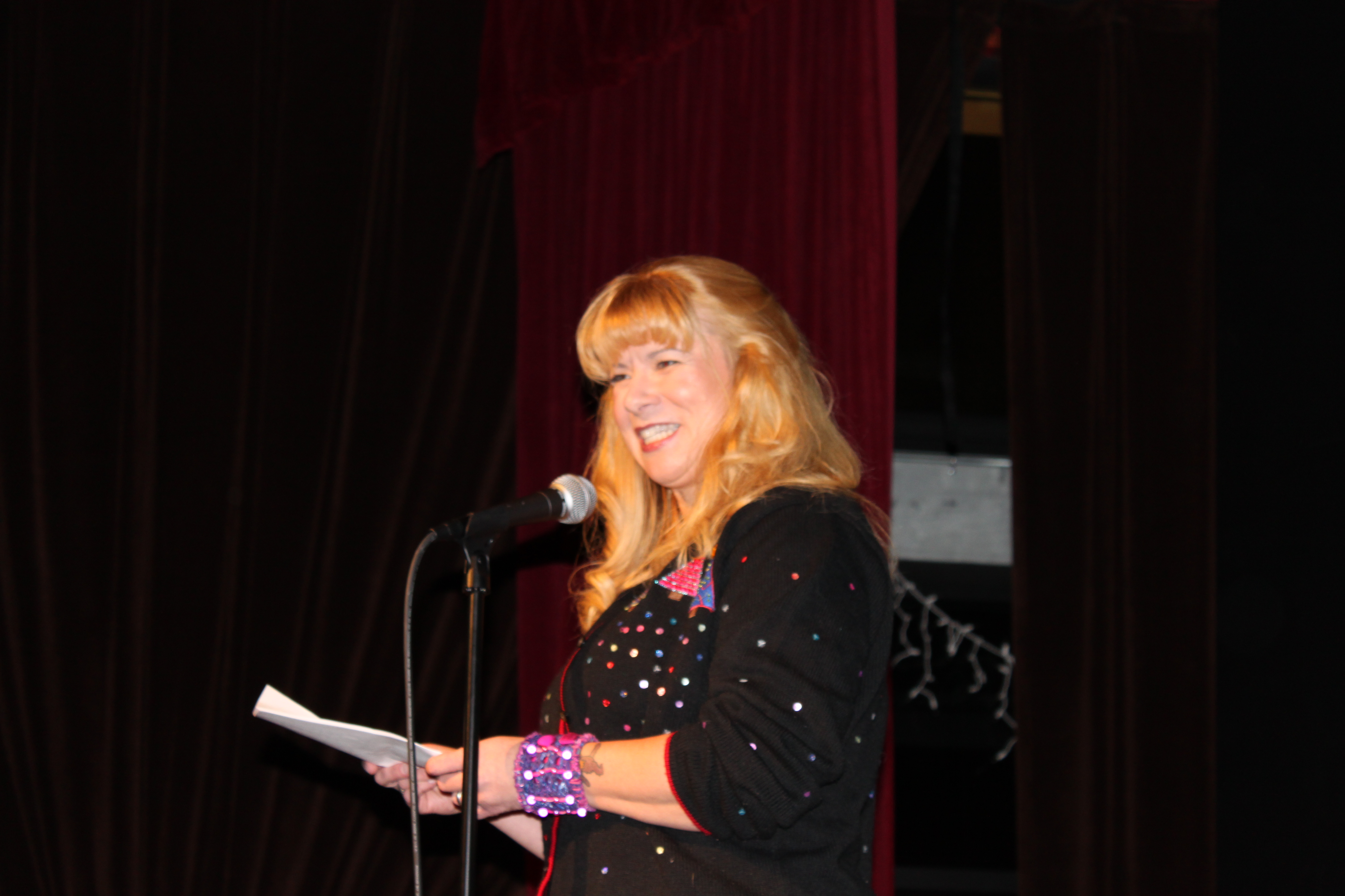 NOW, I can share with you all the amazing photos taken by Debby Dodd’s husband Deke with Wendy Bax’s camera at the “Guess Who’s Messing Up Dinner” show the other night at Curious Comedy Theater. Thank you, Deke and Wendy. The last show was probably our best one yet. If we can find another venue, we’ll spring another holiday show for you. And you should come too, because the moms were crazy funny: