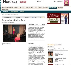 As if my glam opportunity of a lifetime weren’t enough, More posted a whole separate behind-the-scenes article online. At the shoot, a guy was walking quietly around taking digital pictures. I was too busy panting at every word Caroline Rhea said to notice. Rory Evans, the nicest writer ever, quietly took notes too. Like anyone could get a word in with Caroline and me. The results are really fun: