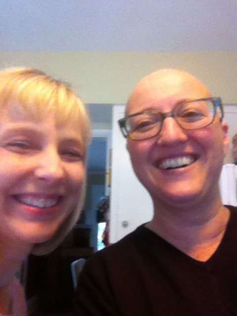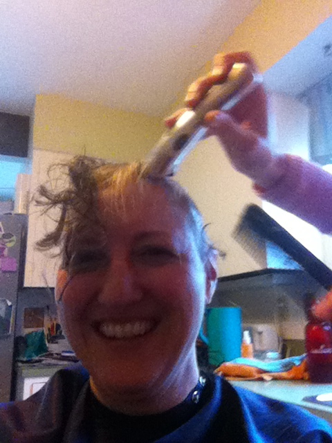 While that was happening, my hair was falling out like crazy. I would be eating lunch and became terrified it would flop into my soup or something. Trina to the rescue again! Tada! How do you like me now, Weird Cancer Guy?