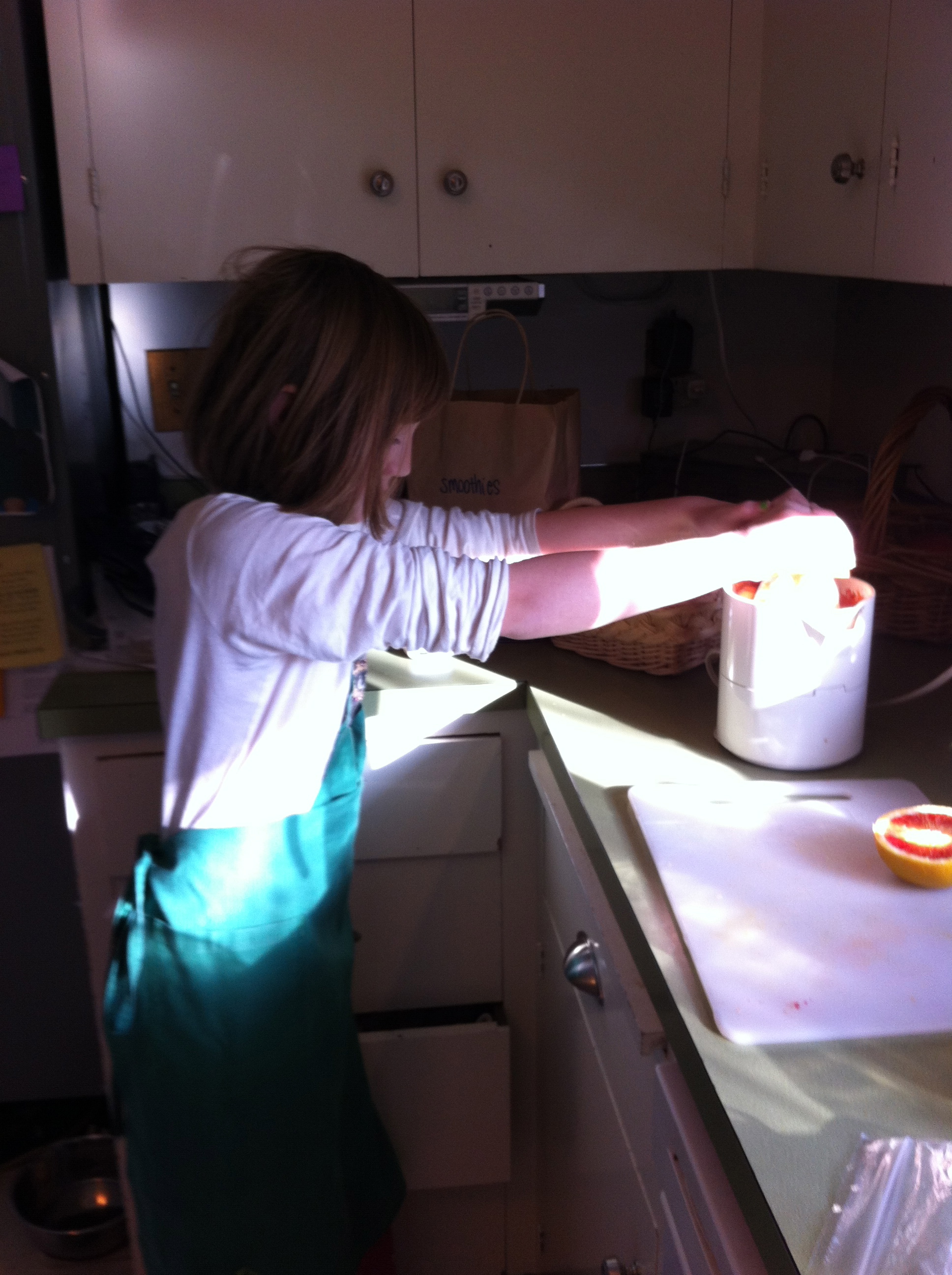 1-IMG_1705Livvie made fresh-squeezed orange juice for everyone. The oranges were pink and blood oranges from Kruger’s on Hawthorne. I know the Kruger’s are me best friends, but seriously – those were the best oranges I’ve ever had. Go get some!