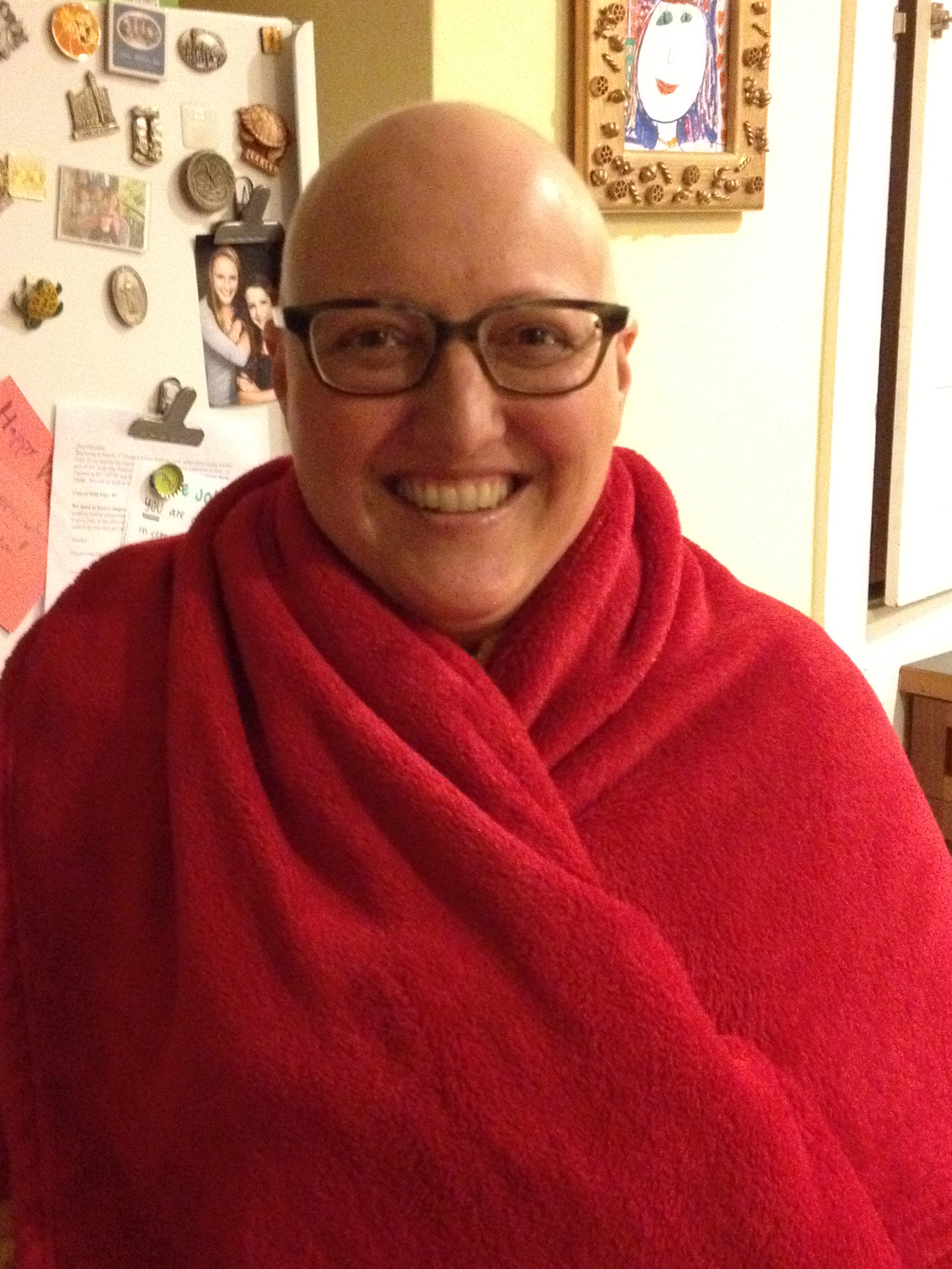 ImageToday not as good as yesterday. But I got to go to my friend Karen’s house and wrap myself up in her red blanket. Coincidentally, the Dalai Lama is coming to Portland soon. And without even trying, I’ve captured the look! Nothing against the Dalai Lama, but I can’t wait to look like myself again. I’ll never whine about a bad hair day again.