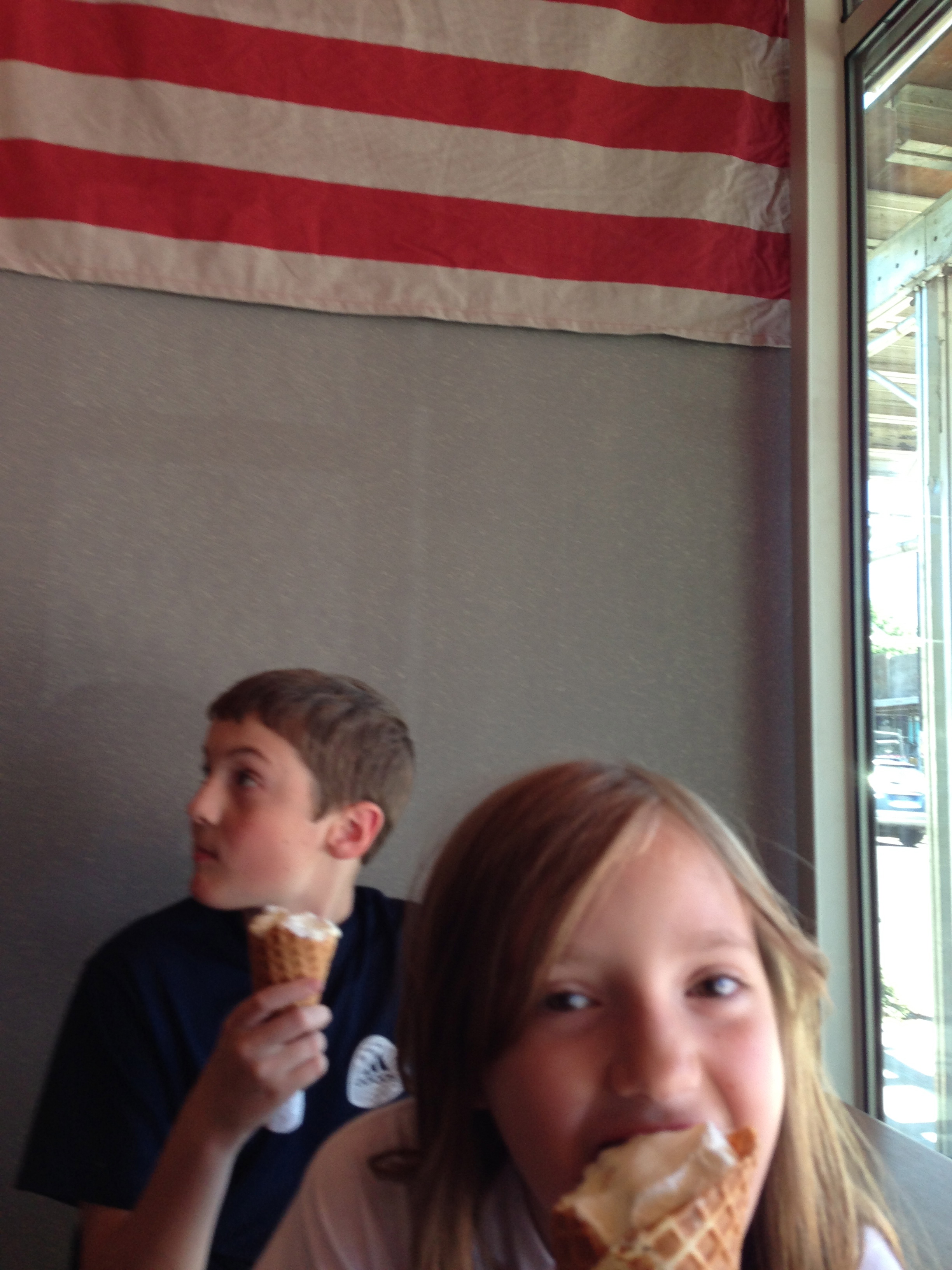 2- Steven and Livvie actually OFFERED to help me clean the house. So I bought them gigantor ice cream cones at Salt & Straw, which makes its own waffle cones right on the spot.