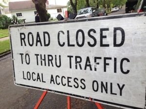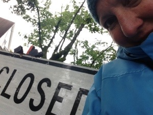When I helped with our school’s Tour de Ladd bike race fundraiser this morning as Street Close Girl, I realized this time last year, Sari found out she had cancer. I was close behind. So we’re coming up on a year, and I’m feeling like the trap door opened and dumped me out on asphalt at the Tour de Ladd. But this time, there weren’t two dudes in a busted-a Eldorado driving around the circle heckling me. And today I didn’t hear myself chirp: Go back to your mother’s basement!