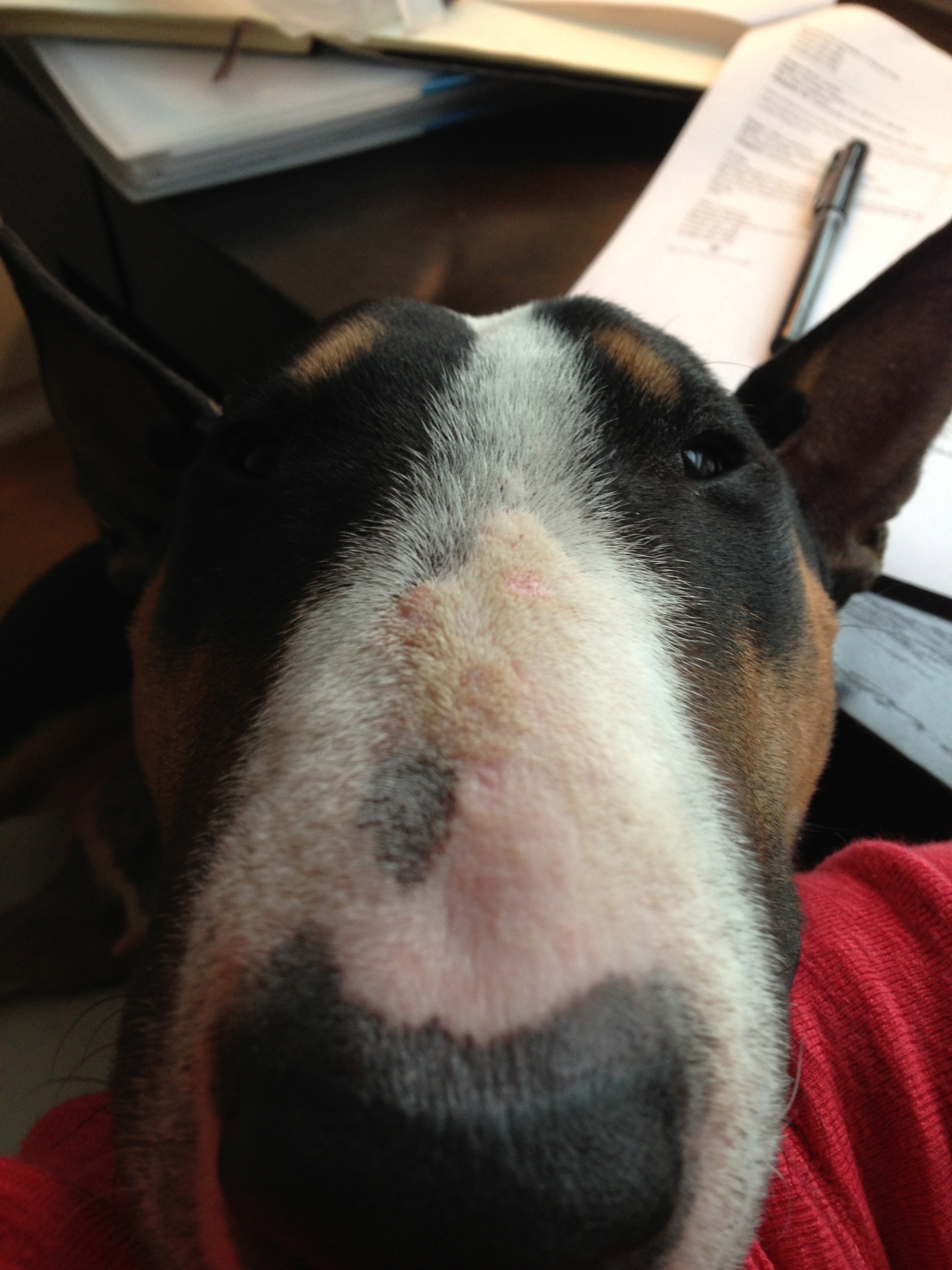 Something overcame me in the fall of last year. I couldn’t stop thinking about my dream dog. The thing is, I didn’t even want a dog. I wanted this dog. Ever since I met a bull terrier named Plait in Copenhagen in the ‘80s, I had been obsessed with those pointy dogs. So I started looking online and couldn’t stop until I found Xena, the Warrior Princess. She had produced 20 puppies and needed to retire. I was ready to retire after one. Her first re-home didn’t work out since Warrior Princess eats chickens. When we went to meet her, Xena stuck her cone head in my purse, then sat on my lap. That was it. Soon after, cancer struck, and she knew it. That dog stayed by my side through every minute of treatment. Now that cancer’s over, she shacks up with everyone else! Seriously? I have to have a fatal disease to rank special attention around here? Thanks to Christine, Xena’s original mommy, for loving her so much and taking such good care of her. Thanks, Xena, for taking care of me.